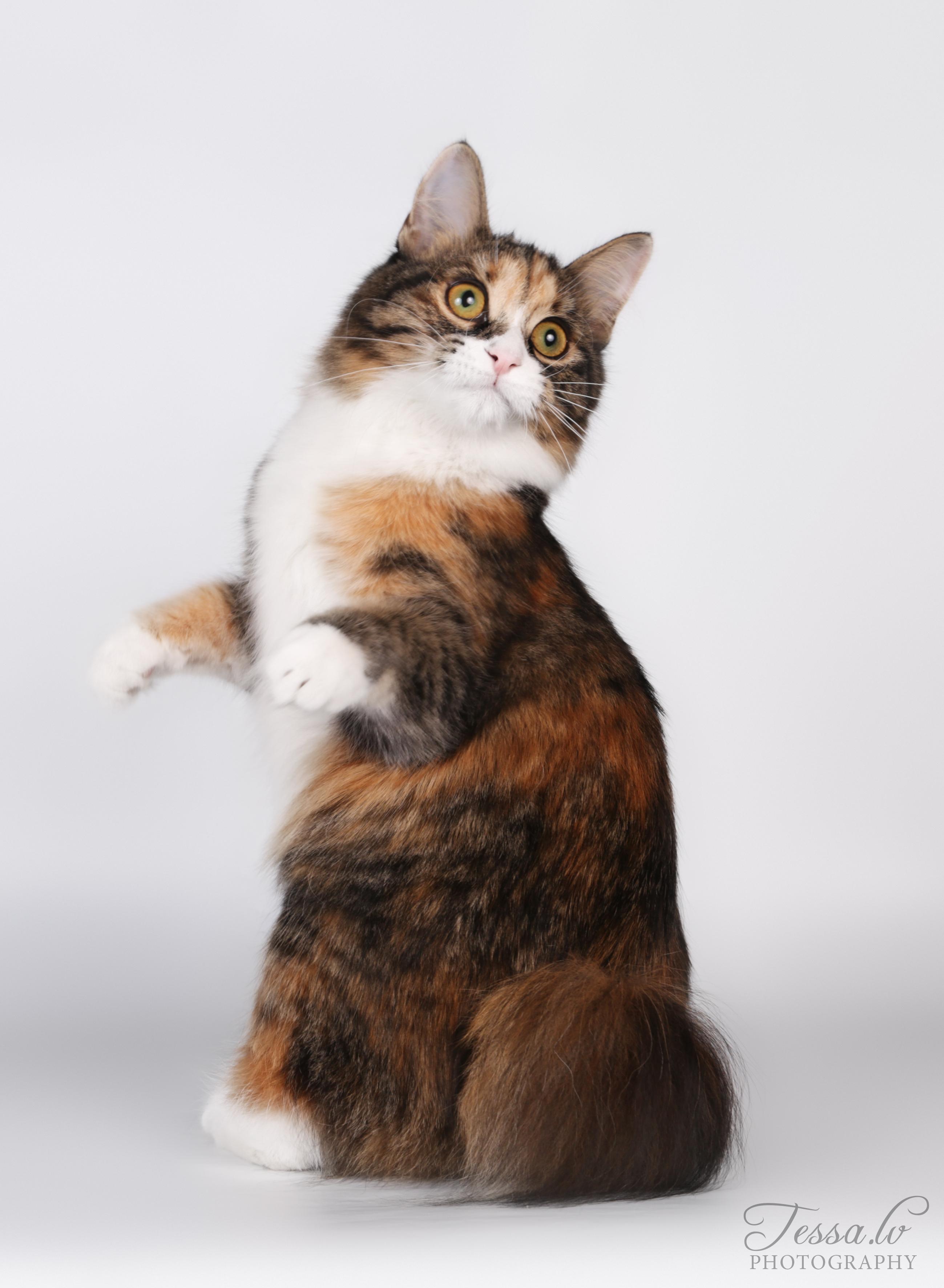 Uodegos ilgis gali būti 3-8 cm, ilgesnė nei 8 cm arba trumpesnė nei 3 cm uodega laikoma defektu (diskvalifikacija, kai uodega ilgesnė nei 12 cm). Kiekvieno katino uodega yra skirtinga ir unikali, neįmanoma surasti dviejų katinų su identiškomis uodegomis. Uodegos unikalumą galima būtų prilyginti žmogaus rankų pirštų antspaudams.